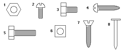 The identifying numbers have been removed from the nuts and bolts in the following picture. Use the key to identify them and write the correct species number in the blank next to each one.