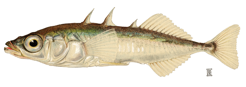 Several stickleback species are familiar and abundant fishes. The three-spined stickleback (Gasterosteus aculeatus) is found almost everywhere in the Northern Hemisphere, in freshwater and salt water. A small fish, 5 to 10 centimetres long, it has three dorsal spines. The nine-spined stickleback (Pungitius pungitius), also small but with more dorsal spines, is another widely distributed form. Other species include the brook stickleback (Culaea inconstans) of North American freshwaters; the four-spined stickleback (Apeltes quadracus), also North American but primarily marine; and the sea, or 15-spined, stickleback (Spinachia spinachia), a slim, many-spined fish of European coasts.